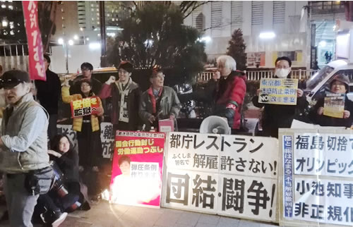 都庁レストラン闘争は3・25大行進と都条例改悪弾劾を闘い、安倍・小池を倒す「都庁前からゼネストへ」の新たな段階に入ります。4・3都庁レストラン闘争一周年集会に集まり、都労連労働者を先頭に改憲阻止ゼネストへ闘いましょう。