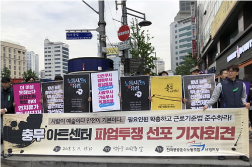 (写真 ソウルの公共文化芸術機関・忠武【チュンム】アートセンター労組が人員不足とサービス残業に抗議してストに突入【5月11日】)