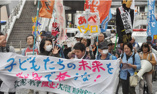 神奈川では、三浦半島教組の組合員を中心に、職場での民営化・非正規職化との闘いと一体で、地域住民とともに「改憲・戦争阻止!大行進」横須賀実行委員会を結成、米軍・自衛隊基地に対する月例デモを開始した。「基地の街・ヨコスカ」から〝子どもたちの未来を戦争で奪うな!〟を掲げた闘いだ。