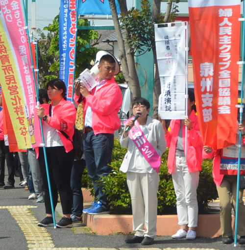 (写真 中川いくこさんを先頭に街頭で市民に訴える)