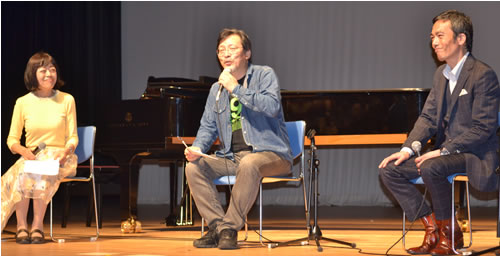 この集会に坂手洋二さんと高橋和也さんが来てくれるかもしれない、と事前に聞いていましたが、本当に来てくれてうれしかったです。お二人と星野暁子さんのトーク(写真)を聴きながら、「ブラインド・タッチ」の劇が今年になって再上演された意義は大きいと思いました。