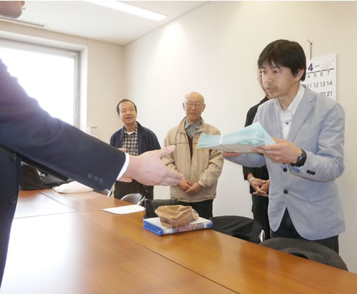 (写真 解雇撤回を訴えて集めた2000筆の署名のうち1500筆を労働委員会に提出。右が八代和幸さん【4月11日 新潟市】)