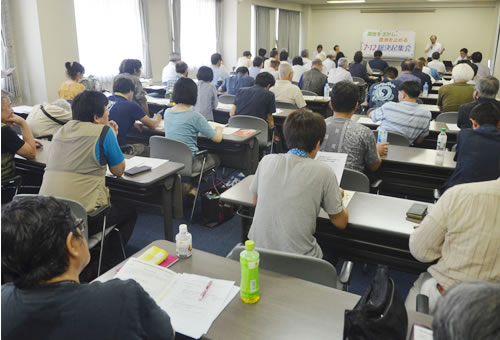 弁護団の武内更一弁護士が、今回の行政訴訟について図を用いて丁寧に解説した。藤田城治弁護士が口頭弁論に多くの人が結集することが重要だと述べた。福岡から駆けつけた構造設計一級建築士の仲盛昭二さんが「日建設計が都の市場問題プロジェクトチーム(PT)で行った説明は真っ赤なうそ。偽装という段階ではなく犯罪」「建築技術的に裁判で負けることは一切ない」と断言した。