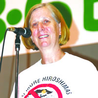 イラク戦争で息子を亡くした「反戦の母」シンディ・シーハンさんは11年以来の参加。長崎集会にも参加するカリフォルニア州「サンノゼ平和と正義センター」のシャラット・G・リンさんは中東や朝鮮半島への戦争に反対し、ILWU(国際港湾倉庫労働組合)とも連帯しています。