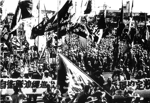 戦後沖縄の闘いの教訓を現代によみがえらせよう。米軍政下にあっても、「復帰」闘争も「復帰」以降の約半世紀のさまざまな闘いも、すべて労働者が、とりわけ基地労働者が労働組合の旗のもとに団結して闘うことで前進してきました。その闘いの頂点が1971年の2度の全島ゼネストです。今日、韓国を先頭に全世界でゼネストが闘われ、労働組合の闘いが世界の最先端に躍り出ています。