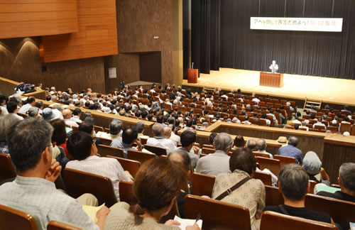 8月12日に東京都墨田区の曳舟文化センター・ホールで、「アベを倒して改憲とめよう!8・12集会」が開催され、550人が集まり9月臨時国会での改憲発議を阻止し安倍を倒すため職場と地域、キャンパスで闘う決意を固めた(詳報次号)