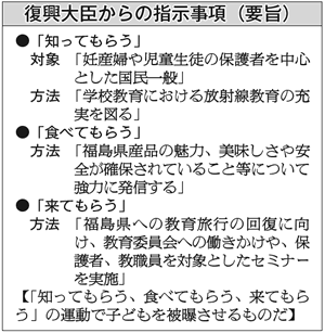 これは〈福島は安全〉〈放射能は少なければ問題ない〉のウソを宣伝することだ。とくに「学校における放射線教育の充実を図る」としている点が重大だ。﹃放射線のホント﹄という小学生向けの冊子まで発行し配布した。また「放射線等についてマンガ等で学べる小学生向け及び中・高校生向け新聞広告を作成し、児童生徒向け新聞に掲載」などを行っている。