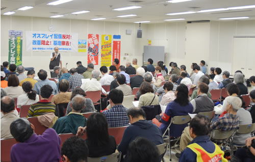 デモに先立って行われた集会では、オスプレイ配備のすさまじい実態を共有し、改憲・戦争阻止の最大のテーマとしてオスプレイ配備阻止、基地撤去へ闘う決意をうち固めました。