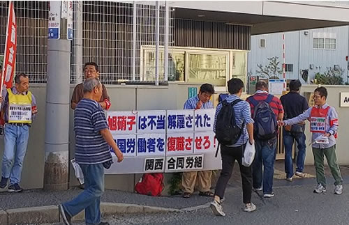 関西合同労組は9月26日、AGC(旭硝子)関西工場尼崎事業所で朝街宣を行いました。