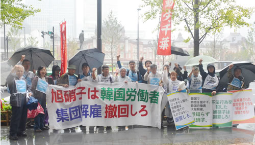 韓国・旭非正規職支会 AGC本社を直撃 解雇撤回へ国際連帯行動