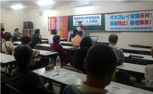 10月26日、国分寺市内で「安倍政権の改憲発議を許さない10・26集会」を開催し、「改憲・戦争阻止!大行進三多摩実行委員会」を結成しました。(写真)