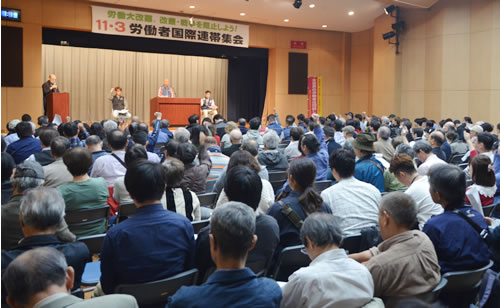 労働者国際連帯の力示す 11・3集会 日・韓・台湾の労組一堂に