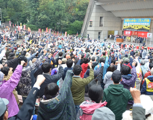11・4集会は、全国各地の「改憲・戦争阻止!大行進」運動と国鉄闘争全国運動、階級的労働運動のねばり強い不屈の前進を土台としてかちとられた。集会で発せられた「改憲・戦争阻止!大行進の発展を」のアピールは、次のように闘いの方針を提起している。