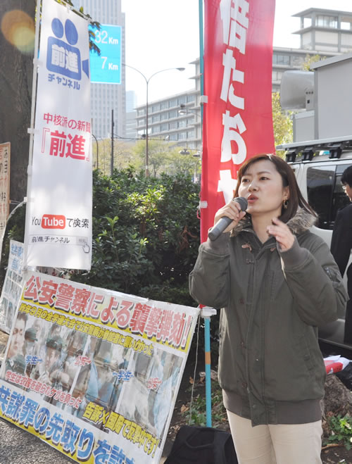 14日昼には首都圏の学生が結集し、でっち上げに加担し2学生の勾留を認めている裁判所と13日の前進社への不当な家宅捜索を弾劾する声を上げた。15日には勾留理由開示公判も行われた。これ以上の勾留を許さず、2学生の即時釈放をかちとろう。