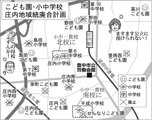 豊中市・庄内地域つぶすな こども園・小中学校統廃合反対を