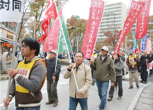 (写真 反対同盟を先頭に「千葉地裁は強制執行を認めるな」とシュプレヒコールを響かせ繁華街を行進【11月19日 千葉市】)