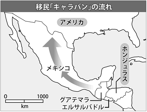 「『移民』キャラバン」と報じられているが、ほとんどがホンジュラスなどからの難民だ。長大な行路を、炎天下や酷寒の中で子どもを連れて徒歩で進むのは並大抵のことではない。ホンジュラスで戦争と2009年の軍事クーデターでの大虐殺が行われ、全域が破壊されなかったならば、キャラバンもなかったはずだ。