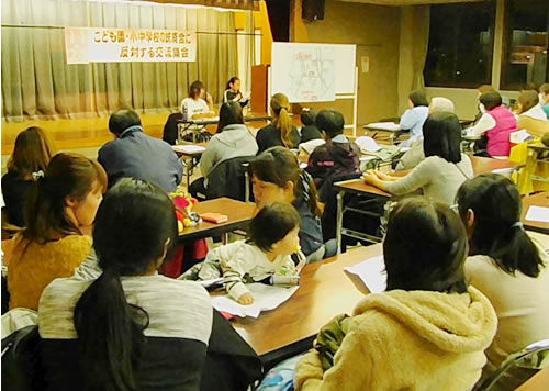 11月23日、大阪・豊中市で「こども園の民営化を許さない会」、保護者の会、住民の会、婦人民主クラブ全国協大阪北支部が主催する「こども園・小中学校の統廃合に反対する交流集会」に120人が集まり、闘いの新たなスタートを切りました。