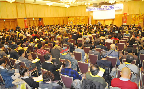 11月25日、「沖縄闘争を闘い獄中44年 星野文昭さん絶対解放 11・25全国集会in高松」(主催/星野さんをとり戻そう!全国再審連絡会議)が、四国地方更生保護委員会のある高松市の香川県県民ホールで開かれ、全国各地の星野救援会を先頭に650人が結集した。殺人罪の冤罪で無期懲役が確定してから31年、星野さんの仮釈放をめぐる審査が更生保護委員会で始まっている。緊迫の正念場を迎え、「星野さんを今すぐ解放せよ」の声が響き渡った。(関連記事2面)