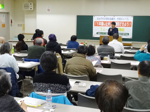 12月8日の「村岡さんへの『5年雇い止め』を撤回させよう 12・8みやぎ集会」には、仙台市職労の組合員をはじめ、60人の仲間が集まりました。
