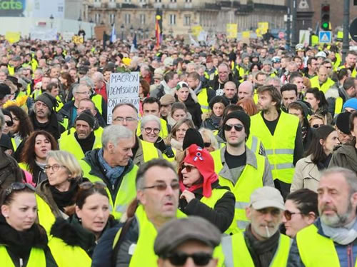 燃料税の引き上げを契機に昨年11月からフランス全土で闘われている「ジレジョーヌ」(黄色いベスト)運動は、年明けも不屈に続けられている。1月5日には全国で5万人、12日は8万2千人、10回目となった19日は8万4千人と、参加者は増え続けている。