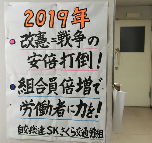 昨年12月5日、職場で組合の全体会議を行い、タクシー労組としての「改憲阻止決議」を全会一致で採択しました。