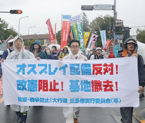 (写真 オスプレイの横田基地配備を弾劾する改憲・戦争阻止!大行進三多摩実行委員会【準】のデモ【昨年9月30日、福生市】)