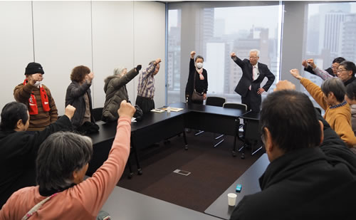 これに先立つ2月15日、京都市に崇仁保育所の移転・民営化反対と南部団地建て替え反対の申し入れを10数人でやりました。昼休み街宣後、二つの担当局に行きましたが、行政の態度はこれまでとは一変し住民の声など聞かないという傲慢(ごうまん)な態度でした。回答すら拒否する市のあり方は絶対に許せません。同じ日、保護者が保育所民営化反対の記者会見をして、要求書を出しました。9割近い保護者が反対しています。更地化・民営化反対、改憲・戦争反対の闘いはこれからです。