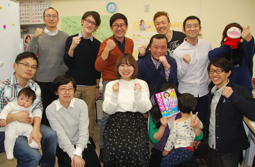 応援に集まったボランティアの労働者・学生とほらぐちさん(前列中央)