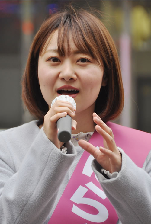 安倍政権が狙う改憲・戦争を絶対に許さない。そして若者や子どもたちが安心して暮らせる社会、差別や抑圧のない社会を次の世代に残すためにも、ぜひみなさん、私と一緒に今の政治を変えましょう。職場や地域から団結をよみがえらせ、ともに声を上げましょう。そしてみなさんの力で、私を区議会に送り込んでください。