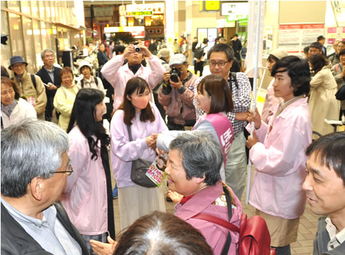 4月21日の杉並区議会議員選挙で、都政を革新する会から立候補したほらぐちともこさん(30歳・新人)が3275票を獲得し、既成政党の度肝を抜く18位で初当選を果たした。改憲を狙う安倍政権や「杉並丸ごと民営化」を進める田中区政への怒りが、圧倒的な「ほらぐち票」となって解き放たれた。ほらぐちさんの勝利は、杉並区民のみならず日本中の労働者や若者・女性に限りない喜びと感動をもたらしている。22日夜には、選挙戦をともに闘った杉並区民や全国の支援者、若者や学生が選挙事務所に詰めかけ、激闘の末にもぎりとった大勝利をほらぐちさんとともに喜び、たたえ合った。