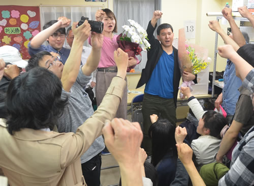4月22日午前11時前に、東京から当選確実の一報が入った時、すぐに地元の仲間に知らせると、「良かった。夢みたい」「すごい!うれしい♪」とメールが届きました。