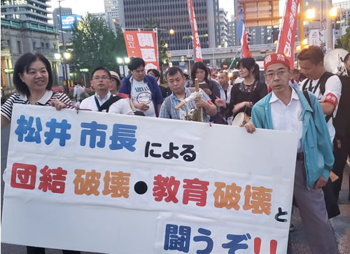 大阪市役所前で集会・デモ 「学力テスト反対」 団結と教育の破壊許さない