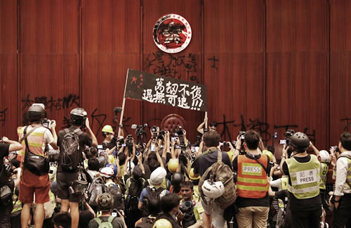 中国返還22年を迎えた7月1日、香港で青年・学生が「逃亡犯条例」の完全撤回や林鄭月娥(りんていげつが)行政長官の辞任を求めて立法会(議会)に突入・占拠し、警官隊と衝突して闘った。議場には「決して戻らない、引かない」と大書した黒い横断幕が掲げられ、壁にはスプレーで「林鄭は辞任しろ」などのスローガンが書き込まれた。