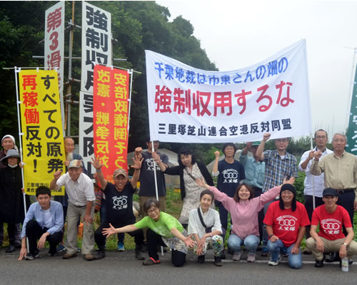司会の婦人行動隊・木内敦子さんがあいさつした。「今日まで土地強奪の強制執行を阻んできたが、今年後半はいよいよ勝負の時。こちらから先制的に闘いに打って出よう」。事務局の伊藤信晴さんが、空港機能強化攻撃の激化の中で周辺住民が怒りを込めて立ち上がりつつあることを報告し、市東さんの9・24請求異議裁判控訴審第1回への大結集を呼びかけた。