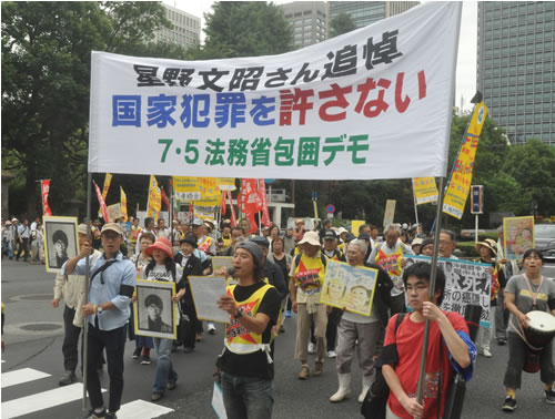 7・26星野さん追悼集会へ 7・5法務省に怒りのデモ 獄死・国家犯罪を許すな