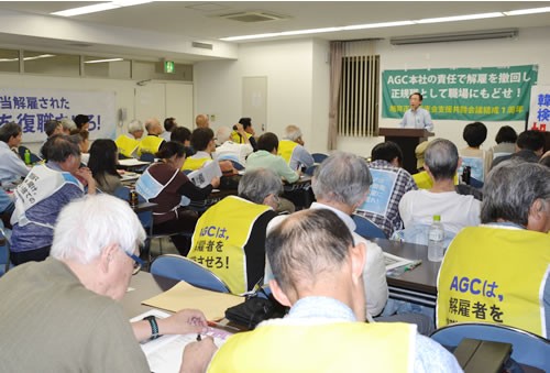 基調報告に立った清水彰二事務局長(群馬合同労組委員長)は、「AGC資本の、労働者の団結をたたきつぶして世界展開をはかるというやり方を日本の労働者階級の怒りに転化して、日本の階級的労働運動再生の力にしよう」と支援共闘の闘いのもつ意義を明らかにし、解雇撤回に向け「AGC本社が恐怖するような大闘争を実現しよう」と呼びかけた。