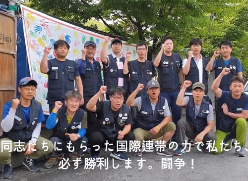 この間、日本遠征闘争やクミでの現場訪問などの交流を進め、今年3月には来日した旭支会の3人とともにAGC株主総会闘争を闘って団結を固めてきた。