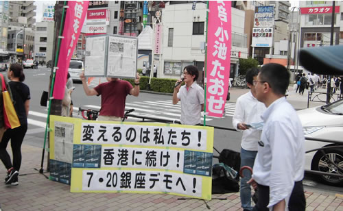 参院選告示日の7月4日、JR総武線の新小岩駅前に中核派として堂々と登場し、「香港200万決起に続こう!」「7・20銀座デモへ」を訴える街頭宣伝を行いました。