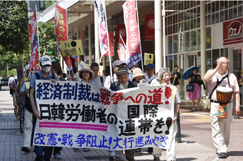 (写真 日韓労働者の国際連帯で戦争阻止をと訴えデモ【8月18日 仙台市】)