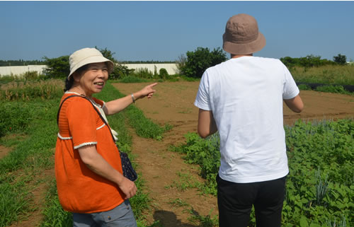 婦人行動隊の宮本麻子さんは、数年ぶりに現地を訪れた参加者のために、南台農地などを案内した。