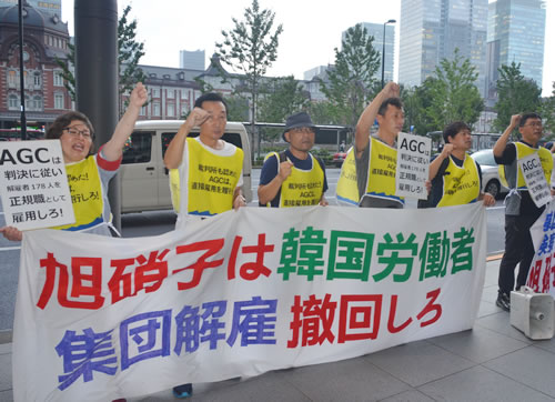 韓国・旭非正規職支会が日本遠征闘争 AGC本社に抗議行動 「判決に従い直接雇用しろ」