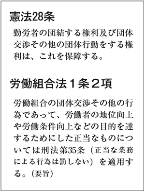 勤労者の団結する権利及び団体交渉その他の団体行動をする権利は、これを保障する。