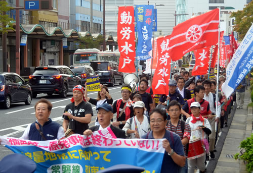 「高線量地帯に向かって列車を走らせるな!常磐線の全線開通は安全か?9・22水戸集会」が9月22日、水戸市内で開かれた。動労水戸をはじめ東海第二原発再稼働阻止へ闘う茨城県内の人々、福島の被災者など全国から620人が集い、被曝を強いる常磐線全線開通阻止を訴えJR水戸支社と東京電力茨城支社前を通るデモに出た(詳報次号)