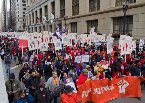 教育労働者3万人がスト 米シカゴ地域丸ごとの闘いに