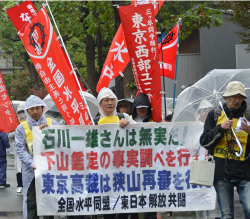 狭山闘争 東京高裁は下山鑑定調べろ 水平同盟・解放共闘がデモと要請