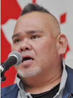 われわれは国家権力の厳しい弾圧を受けています。延べ87名が逮捕され60名以上が起訴されています。おととい、1名が保釈されましたが、いまだに3名の仲間が勾留中です。武委員長は6回の逮捕・起訴を繰り返されています。