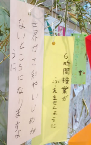 (写真 七夕の短冊。授業時間の増加は子どもたちにとってもたいへん【7月 東京】)