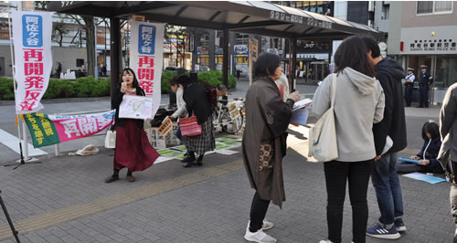 11月17日、JR阿佐ケ谷駅前で住民団体「ストップ!再開発・すぎなみ」の街頭宣伝が行われ、洞口朋子杉並区議が参加し、阿佐ケ谷駅北口再開発の白紙撤回を訴えた。