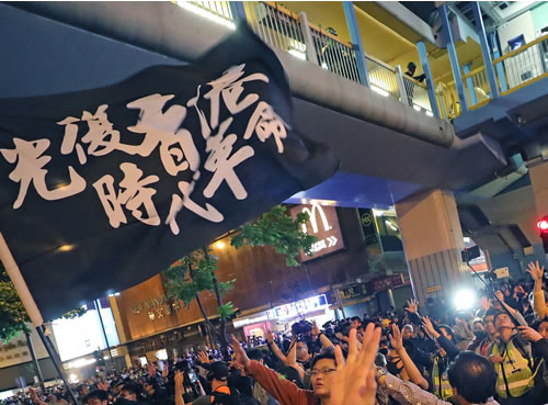 この地平は、5カ月にわたる「逃亡犯条例」改悪に反対する闘いの切り開いた地平であり、普通選挙導入などの「五大要求」を貫く香港の労働者・学生の不屈の決意の表れである。